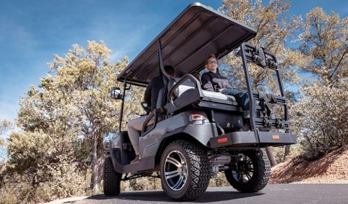 The dimensions of the cart (reflected in the substantial shipping package of 113.6 x 81.5 x 42.5 inches) indicate a vehicle with a solid presence and stability. This size provides reassuring stability on the road while still maintaining the maneuverability needed to navigate tight spaces and narrow paths.